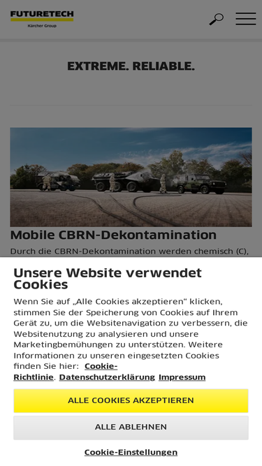 93%kärcher futuretech entwickelt und produziert mobile systeme im bereich cbrn-dekontamination, trinkwasserversorgung, verpflegung und feldlager.