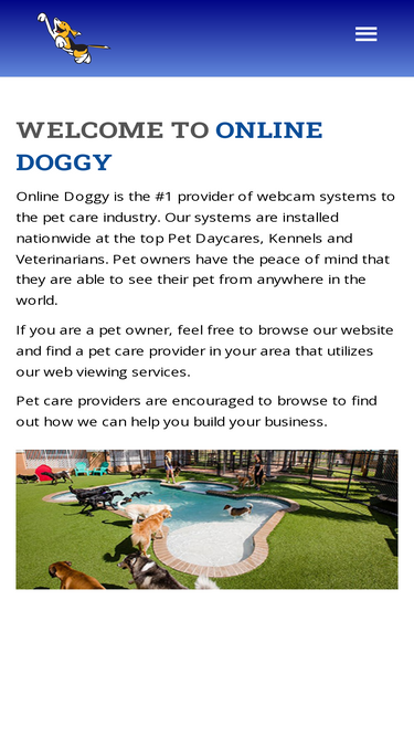 online doggy, providing kennel cam systems to pet care providers, pet daycare.