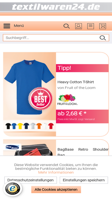 89%Datenschutz +++ ✔ Fruit of the Loom ✔ Gildan ✔ B&C ✔ Flexfit ++ T-Shirts | Poloshirts | Sweat-Shirts | Hosen | Caps & Mützen