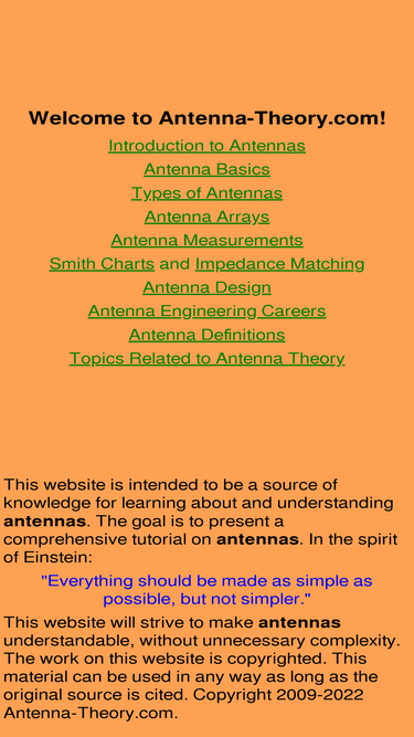 92%an intuitive tutorial of antennas and antenna theory. this website is designed to present a comprehensive overview of antennas, from design, to measurement and theory. unnecessarily complicated math is avoided throughout.