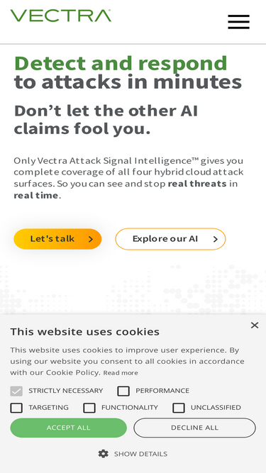 91%We protect modern networks from modern attacks. Vectra AI sees attackers' every move, connecting the dots across network, identity, and cloud.
