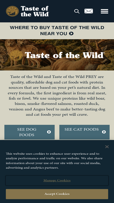 83%Discover Taste of the Wild pet foods, packed with unique proteins and ingredients. Feed your dog or cat’s natural cravings with Taste of the Wild food brands!
