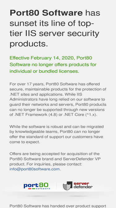 67%port80 software develops web application security and performance solutions to enhance microsoft's internet information services (iis) servers. we specialize in web application firewalls as well as compression and caching.
