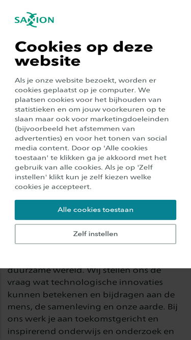 94%bij hogeschool saxion leren we je welke gevolgen innovaties hebben op jouw toekomstige vakgebied en hoe je technologie kunt toepassen om je werk straks nog beter uit te voeren. dus welke opleiding je ook kiest, wij bereiden je voor op een wereld die steeds slimmer wordt.