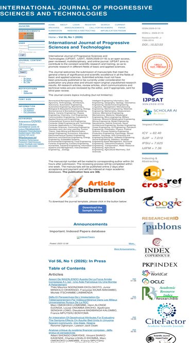 100%the international journal of progressive sciences and technologies is a peer reviewed journal and indexed journal with an open source access. moreover, it is a fast publishing journal with impact factor and a journal with fast review process.