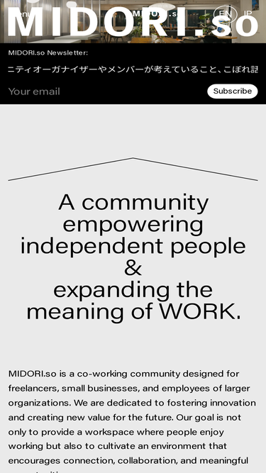 働き方の未来の実践としてシェアオフィスの運営をしているMIRAI INSTITUTEは、運営の核となり、運営拠点の醸成に関わるコミュニティオーガナイザー・拠点運営オペレーションマネージャーを募集しています。 MIRAI INSTITUTEとは 私たちMIRAI INSTITUTEは、働き方の未来の実践としてシェアオフィス『MIDORI.so』の運営や、同じ思考でシェアオフィスの委託運営をしています。