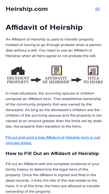 Find out how to prepare an Affidavit of Heirship form online. Download a free, state identified Affidavit of Heirship.