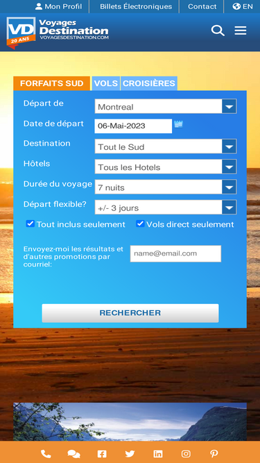 87%Voyages Destination, No 1 des bas prix. Obtenez de 30% à 70% de rabais sur les voyages, forfaits vacances tout inclus, billets d'avion, croisières, vacances dernière minute. Forfaits Cuba, République Dominicaine, Mexique, Sud, Rabais, Aubaines. Trouvez de