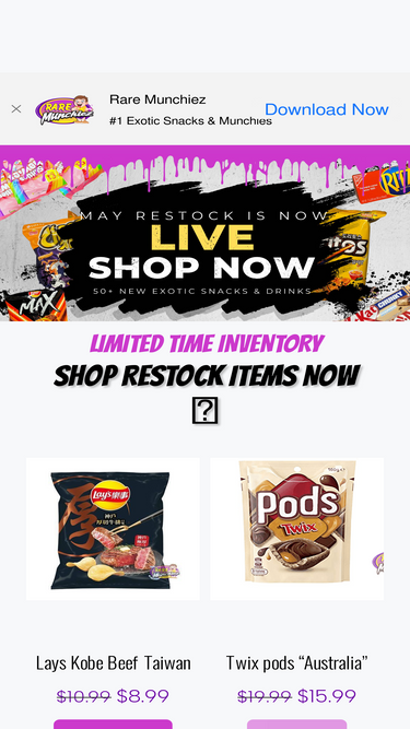 96%Rare Munchiez is #1 in the snack game. Browse our selection of 500+ exotic snacks and drinks from all over the world. Select your favorite exotics or select from our mystery boxes and bundles.
