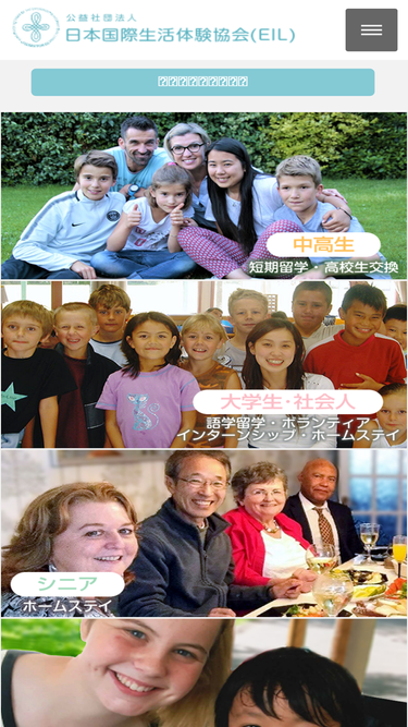 EILは、ホームステイを通じて国際交流をはかり世界平和に寄与することを目的とした非営利法人です。高校生、社会人、主婦、シニアなどあらゆる世代に対して、ホームステイ、留学、交換留学などのプログラムを提供します。
