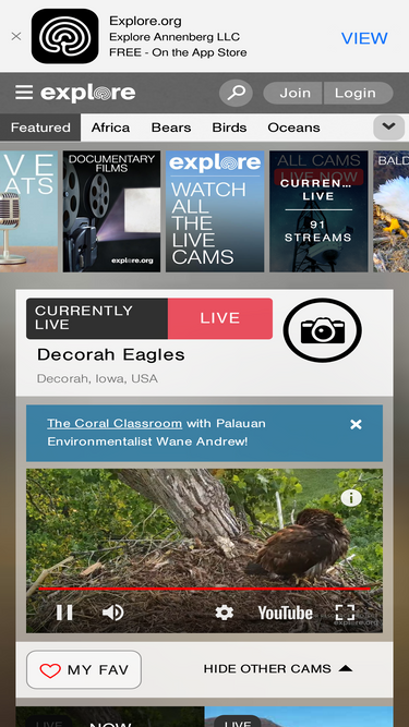 56%Explore.org is the world's leading philanthropic live nature cam network and documentary film channel. Our mission is to champion the selfless acts of others, create a portal into the soul of humanity and inspire lifelong learning. Watch nature unfold live right now!