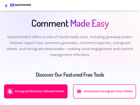 According to Similarweb data of monthly visits, exportcomments.com’s top competitor in January 2026 is easycomment.ai. exportcomments.com 2nd most similar site is sociablekit.com, and closing off the top 3 is igcomment.com.