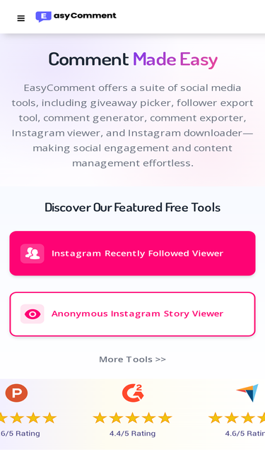 75%exportcomments.com's top 5 competitors in January 2026 are: easycomment.ai, sociablekit.com, igcomment.com, wask.co, and more.