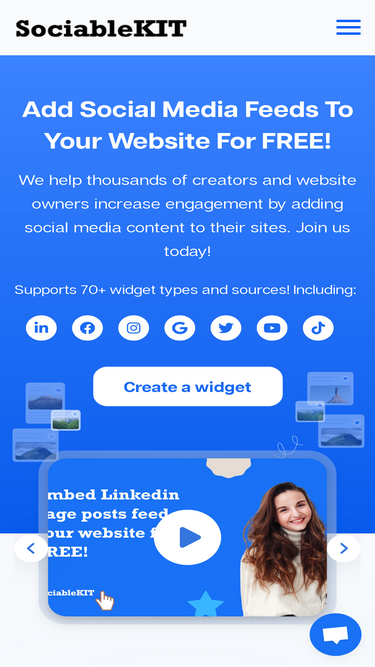 100%add engaging social media feeds to your website for free with sociablekit. join thousands of creators and boost engagement using 90+ widget types. start today!