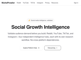 View website metrics, keywords, top marketing channels, market research tools, and more.
