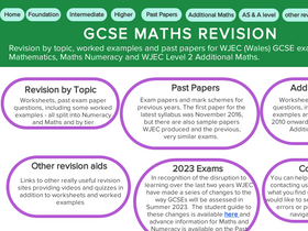 92%Revision by topic, past papers, mark schemes, worksheets - all you need to revise for WJEC GCSE Maths, GCSE Maths Numeracy and WJEC Additional Maths.