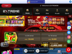 74%Extreme88 offers a wide variety of games including live casino, slots, arcade, sports, fishing, table games, and horse racing. Join now and play responsibly!