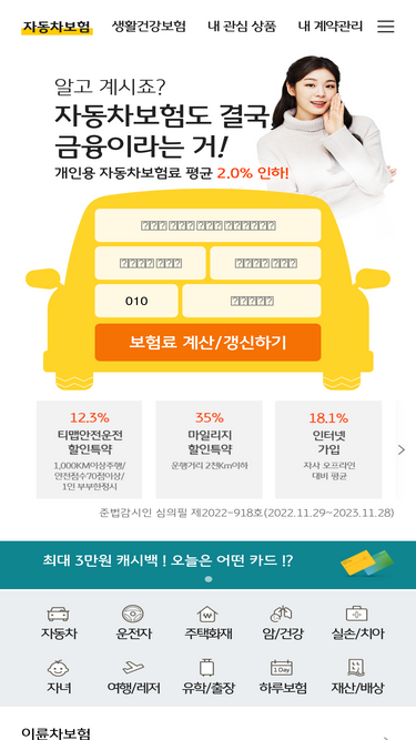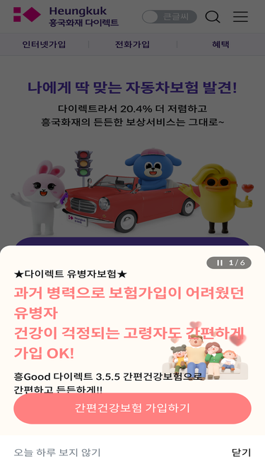 78%흥국화재 다이렉트 공식사이트, 다이렉트자동차 신규/갱신/만기, 다이렉트운전자 간편가입, 계약관리/멤버십 쿠폰북 안내