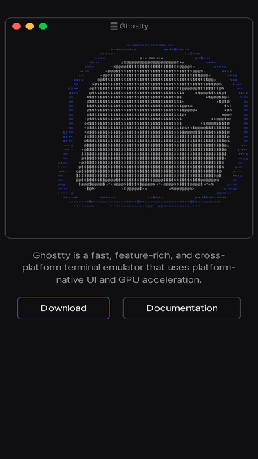 61%Ghostty is a fast, feature-rich, and cross-platform terminal emulator that uses platform-native UI and GPU acceleration.