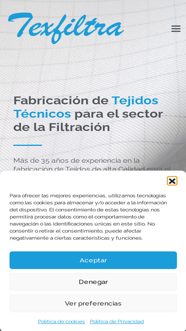 98%Contacto Texfiltra Nuestro equipo profesional está listo para atenderle. (+34) 937 123 427 info@texfiltra.com Visítenos Carrer de Costa i Déu, 63, 08205
