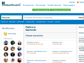 100%работа в щелкове. один из крупнейших порталов по трудоустройству. несколько тысяч вакансий и резюме. бесплатные консультации по трудовому праву, информация о ближайших событиях на рынке труда, производственный календарь и многое другое.