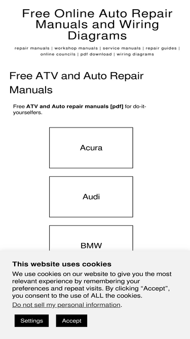 90%free atv and auto repair manuals [pdf] for do-it-yourselfers. acura audi bmw buick chevrolet chrysler citroen daewoo dodge ford honda hyundai jaguar jeep kia lexus lincoln mazda mercedes mitsubishi nissan opel peugeot pontiac renault rover saab seat skoda smart subaru suzuki toyota volkswagen volvo arctic cat atv brp can-am atv honda atv kawasaki atv polaris