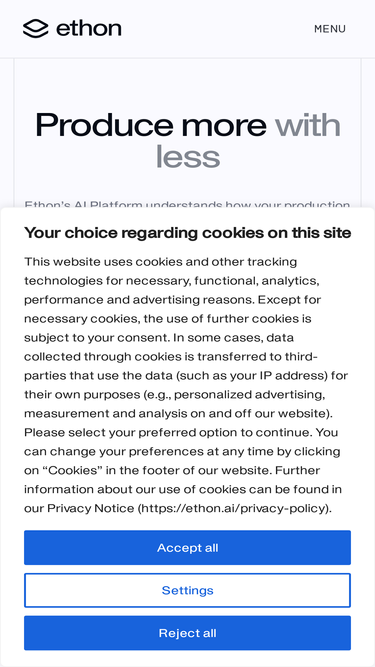 79%Ethon is the #1 Industrial AI platform, built to turn production data into business value. It empowers engineers and operators with agentic workflows to understand, improve, and control their production processes.