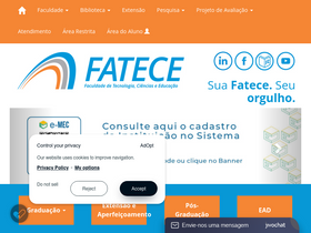 76%a missão da fatece é ser uma instituição de ensino superior inovadora, democrática e difusora do conhecimento científico e tecnológico, nas áreas de ensino.