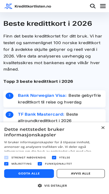 100%Sammenlign og finn de beste Mastercard kredittkortene i Norge. Finn kort med lav rente, cashback, reiseforsikring og andre fordeler. Oppdatert for 2026.