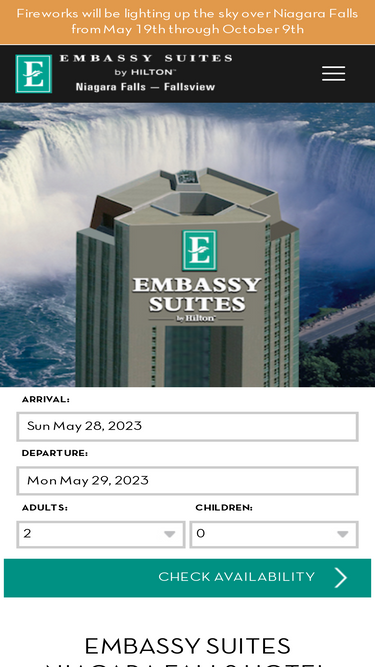 99%Embassy Suites by Hilton Niagara Falls - Fallsview is located only steps from the Horseshoe Falls. The hotel is within walking distance of the casino and convention center.