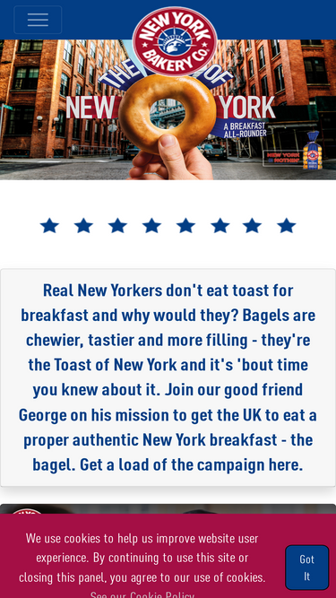 71%New York Bakery Bagels, Sub Rolls & Cookies. Baked full of flavour. For the health conscious or those indulgent moments.