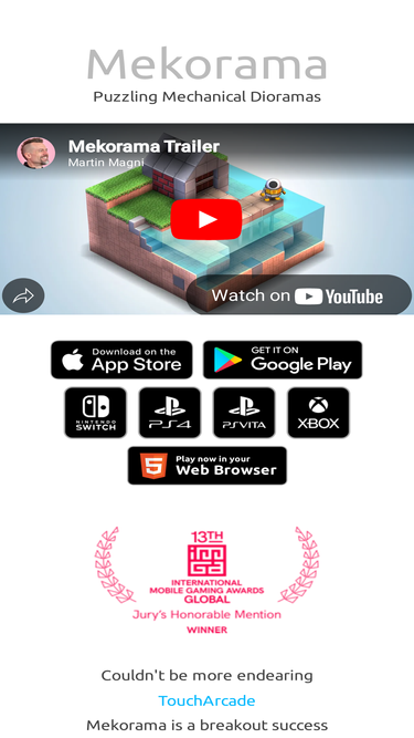 92%mekorama is a mobile puzzle game that can be endlessly expanded through user-created miniature game qr codes.