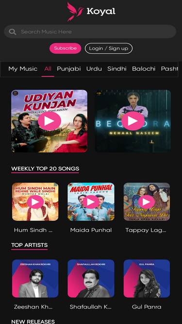 76%Download, Stream & Share New & Old Songs of Urdu, Punjabi, Pashto, Saraiki, Sindhi, Balochi, & Other Regional Languages.