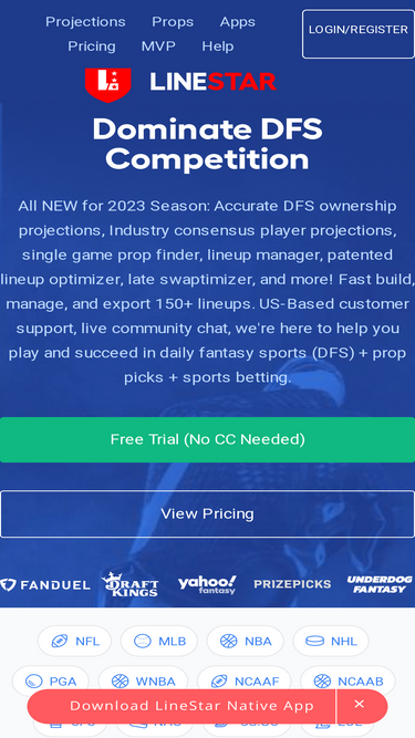 72%maximize your dfs strategy with linestar's dfs lineup optimizer : advanced, patented technology for dfs and props. gain expert sports betting insight and tools for daily fantasy sports success. join now to outperform the competition!