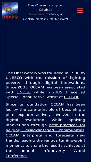 100%OCCAM, Observatory on Digital Communication is Affiliated to United Nations Economic and Social Council, it is a leader in forecasting digital trends for addressing social problem and building a fairer and more inclusive Digital Society. It works with SDGs for achieving 2030 Agenda
