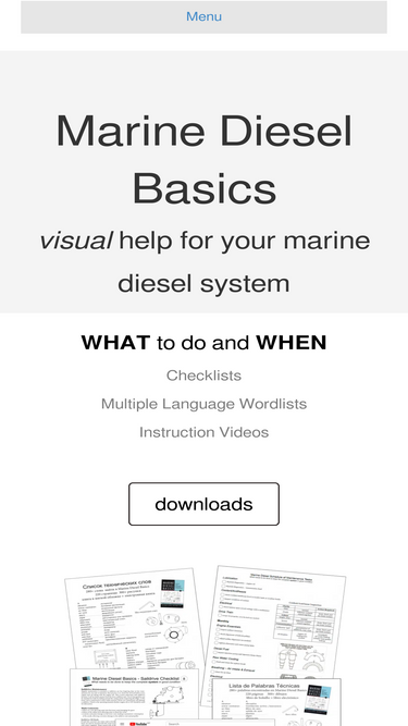 86%Marine Diesel Basics visual help for your marine diesel system WHAT to do and WHEN Checklists Multiple Language Wordlists Instruction Videos downloads See HOW to do maintenance tasks Maintenance, Lay-up, Recommission 222 pages, 300+ drawings US$17.99 paperback $11.99 ebook find out more MANUALS for engines, pumps, seacocks, alternators etc. 2500 manuals - All free - see