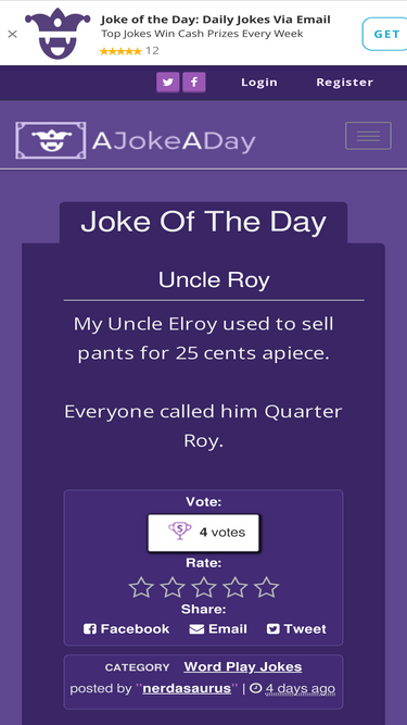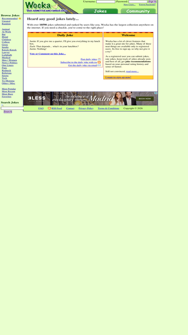 95%free joke of the day. the oldest and most trusted source of funny clean jokes. the top 10 jokes win cash prizes every week!
