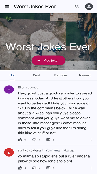 user submitted and ranked jokes. share your favorite jokes with others, and learn some new ones too!