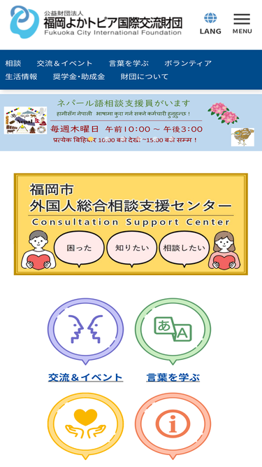 94%福岡で暮らすために必要な情報を提供しています。TEL092-262-1799(Language:Japanese, English, Chinese, Korean)