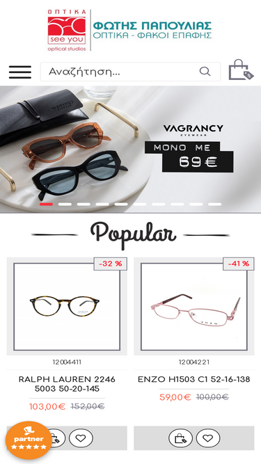 94%Αγοράστε όλα τα επώνυμα ανδρικά & γυναικεία γυαλιά ηλίου και γυαλιά οράσεως στην καλύτερη τιμή. Στο No1 eShop Οπτικών στην Ελλάδα.