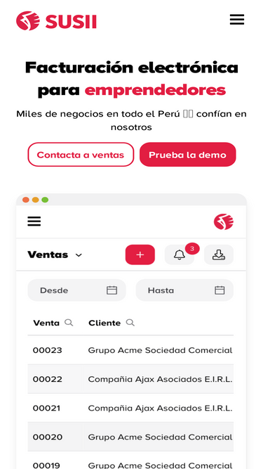 79%susii es la mejor opción de facturación electrónica en perú. emite facturas electrónicas, boletas, notas y guías de remisión.
