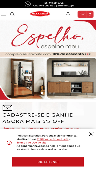 98%Decore seus ambientes com o Rei dos Quadros! Somos uma loja especializada em Quadros, Espelhos e Molduras. Compre sem sair de casa e parcele em até 10x sem juros!