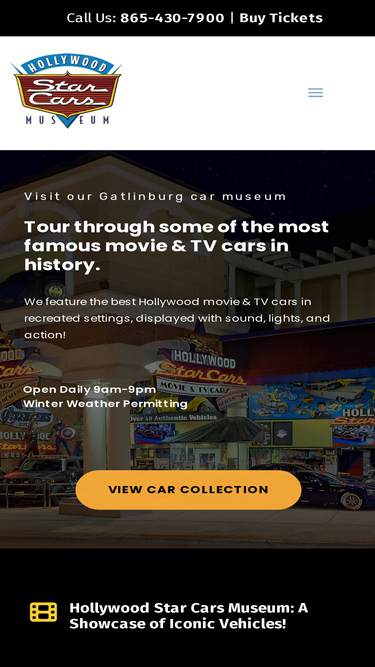 89%About Hollywood Star Cars Museum Come see all the amazing cars we’ve collected in Gatlinburg over the years and learn about the history of the vehicles