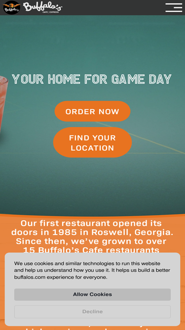 100%Buffalo’s Cafe sticks to that authentic buffalo-style by sourcing only medium-sized wings to consistently deliver that same great texture and taste. Paired with our 13 house-made sauces, it’s no wonder we’ve grown to 17 full-service restaurants and 75+ express locations worldwide with many more comi