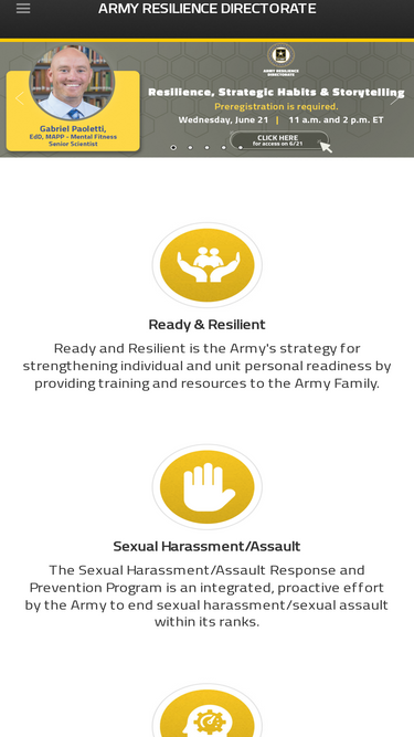 89%official website of the directorate of prevention, resilience and readiness. the mission of the directorate of prevention, resilience and readiness is to provide policy, resources, and capabilities for individuals and leaders in order to increase resilience and readiness through the prevention of suicide, sexual harassment, sexual assault, and substance abuse.