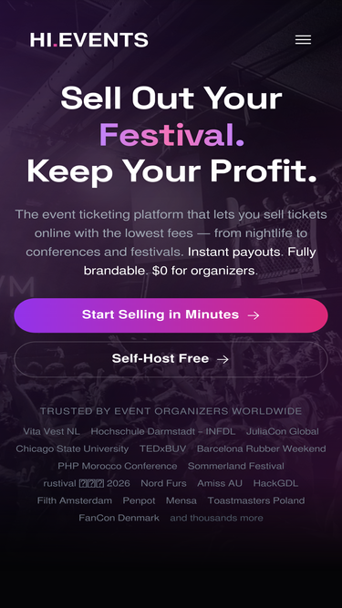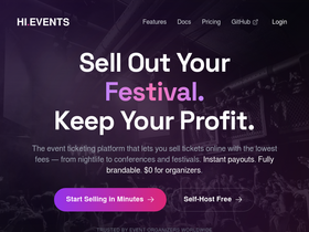 71%Event ticketing with the lowest fees in the industry. Instant payouts, custom branding, full data ownership. Use our cloud or self-host for free. The Eventbrite alternative.