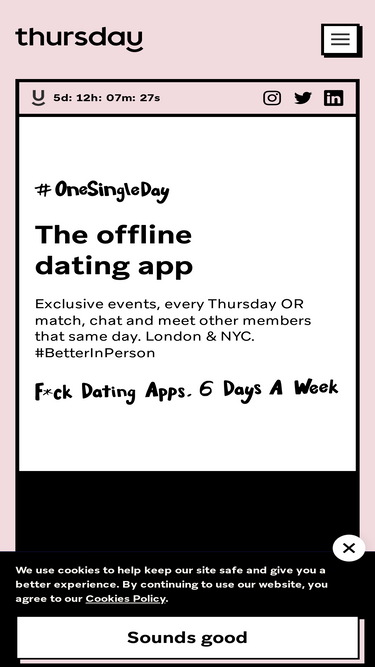 74%Every week, we host singles-only events in 150+ cities. Join us for bar nights, run clubs, comedy & more. There’s a Thursday waiting for you.