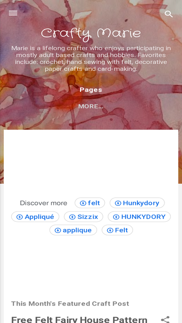 CraftyMarie is a craft site for adults by Marie Williams Johnstone. I love sewing with felt, papercrafts like card-making and lots more crafts.