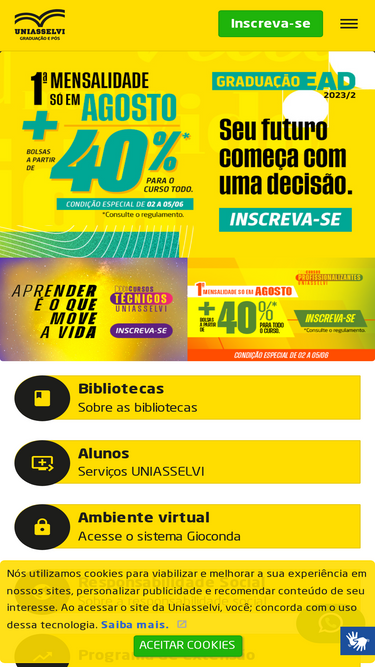 100%A Biblioteca A Biblioteca é um órgão de apoio acadêmico que visa auxiliar e prestar serviços de apoio à pesquisa e ao ensino para alunos, professores, funcionários e a comunidade acadêmica em geral, tendo seu acervo composto por livros, periódicos, DVD’s, CD’s, monografias. A Biblioteca visa proporcionar à comunidade acadêmica, um atendimento adequado as suas […]