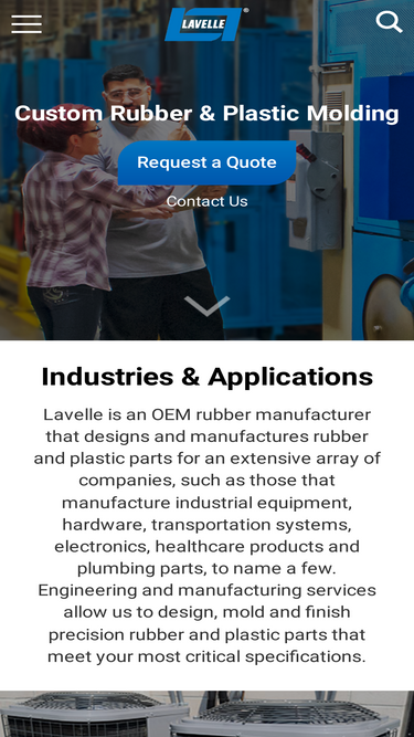 66%lavelle industries is a rubber and plastics manufacturer dedicated to creating precision stock and custom products and assemblies. we offer and design an extensive array of materials that complement our depth of expertise in engineering and tooling to create precision molded rubber and plastic parts that will maximize your products & capabilities.